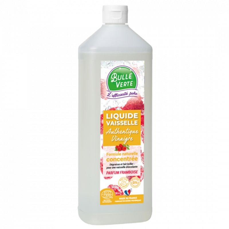 Notre liquide vaisselle authentique vinaigre Framboise dégraisse et fait briller pour une vaisselle étincelante.